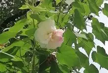 木芙蓉,锦葵科木槿属落叶灌木或小乔木。小枝上有细绒毛;叶片为卵状心形,托叶为披针形,常早落;花单生,花萼为钟形,花冠初为白色或淡红色,后逐渐变为深红色;果实为扁球形,有淡黄色的毛附着。花期8到10月。…全部>>