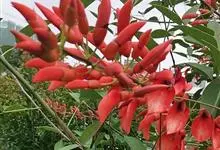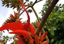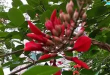 鸡冠刺桐是豆科、刺桐属落叶灌木或小乔木,茎和叶柄稍具皮刺。羽状复叶具3小叶;小叶长卵形或披针状长椭圆形,花与叶同出,总状花序顶生,每节有花1-3朵;花深红色,荚果长约15厘米,褐色,种子间缢缩;种子大,…全部>>