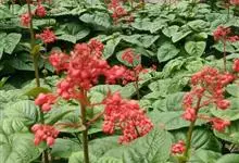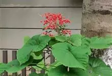 赪桐 Sweet)是唇形科、大青属灌木,高1-4米,叶片圆心形,顶端尖或渐尖,基部心形,边缘有疏短尖齿,表面疏生伏毛,二歧聚伞花序组成顶生,大而开展的圆锥花序,花序的最后侧枝呈总状花序,花萼红色,…全部>>