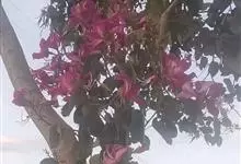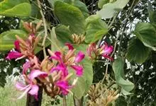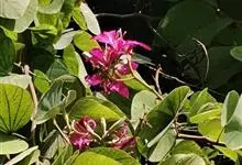 羊蹄甲,别名紫花羊蹄甲、玲甲花,是豆科羊蹄甲属的一种常绿乔木或灌木。树冠开展,枝桠低垂;树皮灰色至暗褐色,近光滑。枝幼时微被灰色短柔毛,后毛脱落;叶硬纸质,近圆形,基部浅心形,…全部>>