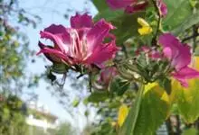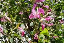 羊蹄甲,别名紫花羊蹄甲、玲甲花,是豆科羊蹄甲属的一种常绿乔木或灌木。树冠开展,枝桠低垂;树皮灰色至暗褐色,近光滑。枝幼时微被灰色短柔毛,后毛脱落;叶硬纸质,近圆形,基部浅心形,…全部>>