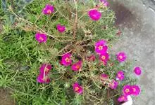 大花马齿苋:一年生草本,高10-30厘米。茎平卧或斜升,紫红色,多分枝,节上丛生毛。叶密集枝端,较下的叶不规则互生,叶片细圆柱形,无毛。花单生或数朵簇生枝端,直径2.5-4厘米,…全部>>