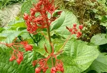 赪桐 Sweet)是唇形科、大青属灌木,高1-4米,叶片圆心形,顶端尖或渐尖,基部心形,边缘有疏短尖齿,表面疏生伏毛,二歧聚伞花序组成顶生,大而开展的圆锥花序,花序的最后侧枝呈总状花序,花萼红色,…全部>>