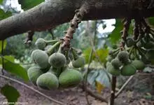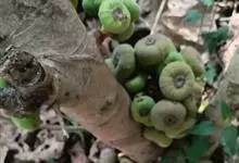 大果榕是桑科榕属的小乔木,株高可达10米;幼枝被柔毛;叶互生,宽卵状心形或近圆形;雄花无梗、匙形、花丝长,雌花生于雌株榕果内,子房白色;榕果簇生于树干基部或老茎短枝上、扁球形或陀螺形,…全部>>