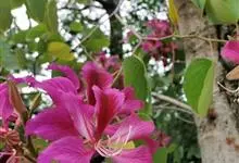 红花羊蹄甲,为豆科羊蹄甲属植物,别名艳紫荆、洋紫荆。半落叶乔木,高达了~10 m,叶草质,近圆形或阔心形,长8~13cm顶端开裂至全叶长1/4~13,裂片顶端圆。总状花序顶生或腋生,花冠紫红色,…全部>>