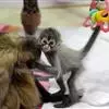 蛛猴属:共有7种。头体长约35-66厘米。头又圆又小,四肢细长,手没有拇指。毛茸茸的尾巴约有60-92厘米长,很会抓住树枝,其功能有点像手。尾巴比身体还长,缠绕性极强。能直立行走。…全部>>