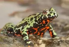 东方铃蟾是盘舌蟾科、铃蟾属两栖动物。体长36-48毫米左右头扁平,吻圆,前、后肢短,皮肤粗糙,刺黑色,背部呈灰棕色,或背为绿色杂以不规则的黑色斑点,腹面有花斑,为黑色与朱红色或桔黄色。雄性前肢较粗壮,…全部>>
