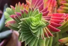 茜之塔 Toelken)是景天科青锁龙属多年生肉质草本植物。茜之塔叶交互对生,紧密排列,三角形,绿色,冬季叶转变呈红色;花小,白色;花期秋季。茜之塔因其整齐层叠的紫红色叶片让人想到红色佛塔,故名。…全部>>