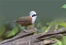 白颊噪鹛是雀形目噪鹛科噪鹛属鸟类,又称土画眉、小画眉、小噪鹃。成鸟额至头顶栗褐色,长眉纹、眼先和颊纹棕白色,眼后至耳羽深褐色,…全部>>