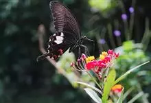 玉斑凤蝶Papilio helenus 别名白纹凤蝶,是凤蝶科凤蝶属美凤蝶亚属大型种类。雌雄同型;体翅皆黑色,后翅正面中室外有3个并列的白色斑,亚外缘有1列模糊的新月形红色斑,…全部>>