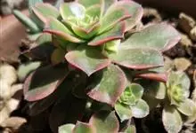 艳日辉是景天科莲花掌属多年生肉质草本植物,也称多浆植物。其原产于大西洋的加那利群岛,是一种旱生植物,不耐寒。叶片长勺形,边缘有锯齿,光照不足时全株绿色,光照充足且温差大时,叶片会变成淡淡的粉红色,…全部>>