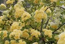黄木香花 Rehd.)是蔷薇科、蔷薇属植物,为木香花的变型品种,攀缘小灌木,高可达6米。小叶3-5枚,稀7枚,小叶片椭圆形或长圆状披针形,先端急尖或稍钝,基部近圆形或宽楔形,边缘有紧贴细锯齿。花小型,…全部>>