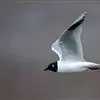 黑嘴鸥 中型水鸟,体长31~39厘米。嘴黑色,脚红色。夏羽头黑色,眼上和眼 下具白色星月形斑,在黑色的头上极为醒目。颈、腰、尾上覆羽、尾和下体白色。初级飞羽末端具黑色斑点。翼下仅部分初级飞羽黑色,与…全部>>