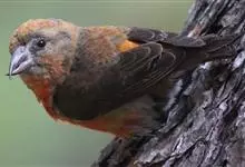 红交嘴雀:体重28-48克,体长145-175毫米。是燕雀科交嘴雀属的鸣禽。是一种小型的燕雀。雄鸟通体砖红色,上体较暗,腰鲜红色;翼和尾近黑色,头侧暗褐色;雌鸟暗橄榄绿或染灰色,…全部>>
