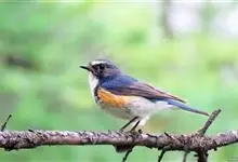 红胁蓝尾鸲俗名:蓝点冈子、蓝尾巴根子、蓝尾杰、蓝尾欧鸲。体型略小而喉白的鸲。特征为橘黄色两胁与白色腹部及臀成对比。雄鸟上体蓝色,眉纹白;亚成鸟及雌鸟褐色,尾蓝。…全部>>