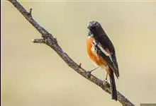 白喉红尾鸲,小型鸟类,体长14-16厘米。雄鸟额至枕钴蓝色,头侧、背、两翅和尾黑色,翅上有一大形白斑,腰和尾上覆羽栗棕色。颏、喉黑色,下喉中央有一白斑,在四周黑色衬托下极为醒目,其余下体栗棕色,…全部>>