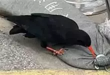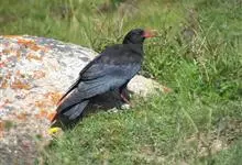红嘴山鸦,是脊索动物门鸟纲雀形目鸦科鸟类。红嘴山鸦的成鸟通体羽毛纯黑色具有蓝色金属光泽,翼和尾泛有蓝绿色金属光泽;虹膜暗褐色,喙较为尖细,并且呈镰状下弯,喙和脚朱红色。…全部>>