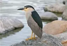 夜鹭是中型涉禽,体长46-60厘米。体较粗胖,颈较短;嘴尖细,微向下曲,黑色;胫裸出部分较少,脚和趾黄色;头顶至背黑绿色而具金属光泽;上体余部灰色;下体白色;枕部披有2-3枚长带状白色饰羽,下垂至背上,…全部>>