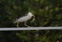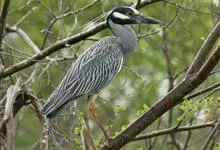 夜鹭是中型涉禽,体长46-60厘米。体较粗胖,颈较短;嘴尖细,微向下曲,黑色;胫裸出部分较少,脚和趾黄色;头顶至背黑绿色而具金属光泽;上体余部灰色;下体白色;枕部披有2-3枚长带状白色饰羽,下垂至背上,…全部>>