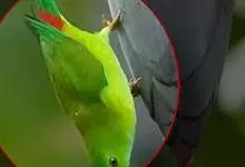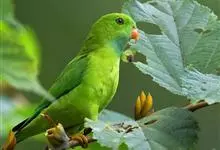 短尾鹦鹉是典型的攀禽,体形小,翅长在90毫米左右;尾较翅短;嘴较细削,其厚度不及嘴峰长度;腰下有朱红色块斑;雄鸟喉部有蓝色块斑。鸟喙强劲有力,喙钩曲,上颌具有可活动关节,喙基部具有腊膜。肌肉质舌厚。…全部>>
