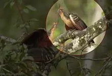 麝雉,又名爪羽鸡,属于鹃形目麝雉科麝雉属的鸟类动物。麝雉的大小和普通的雉鸡差不多,体长65厘米左右,体重通常不超过1千克;身体大部分呈褐色,下身颜色较淡;面部没有羽毛,…全部>>
