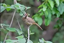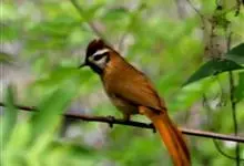 白颊噪鹛是雀形目噪鹛科噪鹛属鸟类,又称土画眉、小画眉、小噪鹃。成鸟额至头顶栗褐色,长眉纹、眼先和颊纹棕白色,眼后至耳羽深褐色,…全部>>