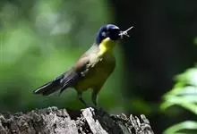 黄喉噪鹛体型略小,顶冠蓝灰色,特征为具黑色的眼罩和鲜黄色的喉。上体褐色,尾端黑色而具白色边缘,腹部及尾下覆羽皮黄色而渐变成白色。黄喉噪鹛隐匿于亚热带常绿林和浓密灌丛,于地面杂物中取食,喜食昆虫,…全部>>