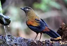 蓝翅噪鹛:噪鹛科、彩翼噪鹛属动物。中型鸟类,体长22-25厘米。上体棕橄榄褐色密被黑色鳞状斑,眼蓝白色,眼上有一长而宽阔的黑色眉纹,从眼先直到颈侧。下体棕褐色被黑色鳞状斑;尾上和尾上覆羽栗色,…全部>>