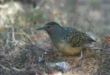 大噪鹛:中型鸟类,体长32-36厘米。额至头顶黑褐色,背栗褐色满杂以白色斑点,斑点前缘或四周还围有黑色。初级覆羽、大覆羽和初级飞羽具白色端斑。尾特长,均具黑色亚端斑和白色端斑。颏、喉棕褐色,…全部>>