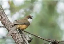 白冠噪鹛是画眉科噪鹛属的鸟类。是中型鸟类,体长28-32厘米。常见于常绿阔叶林、杂有竹丛的树林以及林下灌丛。该物种的模式产地在喜马拉雅山脉西部。主要以金龟甲、步行虫、甲虫、蝉、鳞翅目幼虫等昆虫为食,…全部>>