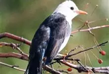 白颊鹎是雀形目鹎科鸟类。体长19—21厘米。雌雄相似。成鸟头部深灰色具一显著的羽冠,白色脸侧具一黑色点状斑纹。颏部、喉部黑色;胸部、腹部、两胁近白色;背部、两翼近灰色;尾下覆羽黄色,尾羽灰色,…全部>>
