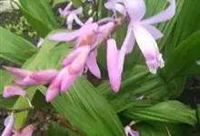 黄花白及:草本植物,植株高25-55厘米。假鳞茎扁斜卵形,较大,上面具荸荠似的环带,富粘性。茎较粗壮,常具4枚叶。叶长圆状披针形,先端渐尖或急尖,基部收狭成鞘并抱茎。花序具3-8朵花,…全部>>