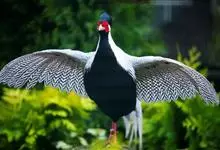 白鹇,是鸡形目雉科鹇属的一种留鸟。雄鸟上体白色并具黑色纹,下体黑色,头顶具黑色长羽冠,尾白而长;雌鸟体型较小,以橄榄褐色为主,下体具白色或皮黄色细纹;虹膜褐色,眼周具红色裸皮,喙黄色,脚鲜红色。…全部>>