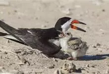 黑剪嘴鸥:是鸟纲、鸥科的物种。雄鸟体型往往比雌鸟大。雄鸟约365克,雌鸟平均265克,个体长约46厘米,翼展112厘米。是一种下喙比上喙长、瞳孔和猫的瞳孔相似的鸥亚科剪嘴鸥族鸟类。下体和前额白色。…全部>>