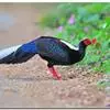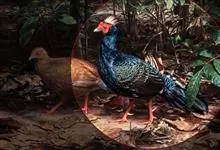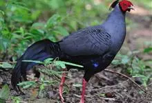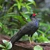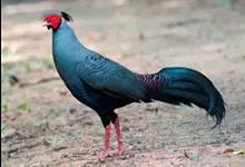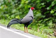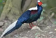蓝鹇是雉科、鹇属一种大型雉类。体长50-80厘米。雄鸟头颈黑色,羽冠白色,有时杂以黑斑;脸红色,额部肉冠和脸部肉垂亦为红色;后颈和颈侧蓝黑色;肩赤红色;翅上覆羽及外侧次级飞羽黑色,…全部>>