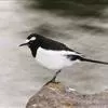 日本鹡鸰:体长约20厘米。上体多黑色,额、颏及眉纹白,下体白,两翼黑而具白色横斑及羽缘,尾黑而边缘白色。虹膜深褐色;嘴黑色;脚黑色。飞行时发出嘁喳声,具复杂而独特的鸣声。喜农田、稻田和溪流。…全部>>