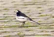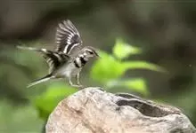日本鹡鸰:体长约20厘米。上体多黑色,额、颏及眉纹白,下体白,两翼黑而具白色横斑及羽缘,尾黑而边缘白色。虹膜深褐色;嘴黑色;脚黑色。飞行时发出嘁喳声,具复杂而独特的鸣声。喜农田、稻田和溪流。…全部>>