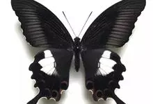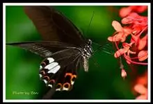 玉斑凤蝶Papilio helenus 别名白纹凤蝶,是凤蝶科凤蝶属美凤蝶亚属大型种类。雌雄同型;体翅皆黑色,后翅正面中室外有3个并列的白色斑,亚外缘有1列模糊的新月形红色斑,…全部>>