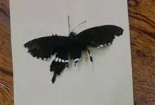 玉斑凤蝶Papilio helenus 别名白纹凤蝶,是凤蝶科凤蝶属美凤蝶亚属大型种类。雌雄同型;体翅皆黑色,后翅正面中室外有3个并列的白色斑,亚外缘有1列模糊的新月形红色斑,…全部>>