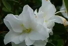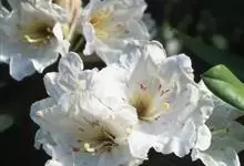 大白杜鹃是杜鹃花科杜鹃花属的常绿灌木,高可达5米。幼枝绿色,无毛;叶厚革质,长圆形或圆状倒卵形,先端钝或圆,基部楔形;总状伞形花序顶生,花序轴疏生白色腺体,花梗粗,具白色有柄腺体,冠宽漏斗状钟形,…全部>>