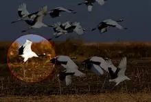 丹顶鹤:是鹤科、鹤属的一种大型涉禽,体长120-160厘米。颈、脚较长,通体大多白色,头顶鲜红色,喉和颈黑色,耳至头枕白色,脚黑色,站立时颈、尾部飞羽和脚黑色,头顶红色,…全部>>