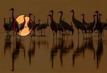 灰鹤是鹤形目鹤科鹤属鸟类,别名千岁鹤、玄鹤、番薯鹤、普通鹤、元鹤。通体羽色几乎全为灰色;前额和眼先黑色,头顶裸区部分呈朱红色,…全部>>