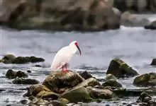 朱鹮是鹈形目鹮科朱鹮属的鸟类动物。其雄鸟通体白色,羽干及两翅与尾等均沾染粉红色;颈项上有很多长矛状羽毛,形成羽冠,耸立时非常夺目;嘴长而向下曲,呈黑色,先端朱红,脚的裸露部分亦呈亮红色。雌鸟羽色略同,…全部>>