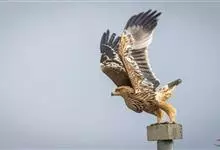 白肩雕:又名御雕,是大型猛禽。体长73-84厘米。体羽黑褐色,头和颈较淡,肩部有明显的白斑,在黑褐色的体羽上极为醒目,很远即可看见,这是区别其他雕的主要特征。滑翔时两翅平直,滑翔和翱翔时两翅亦不上举…全部>>