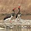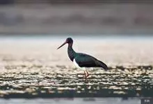 黑鹳是鹳形目鹳科鹳属鸟类,俗称乌鹳、钢鹳、老鹤。黑鹳头、颈和脊均呈黑褐色,故名黑鹳。黑鹳上体羽黑色、并带有绿紫色金属光泽,胸腹部羽白色;嘴、腿均红色;两性相似;成鸟嘴长而直,基部较粗,…全部>>