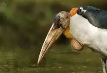 黑头鹮鹳:大型涉禽。体长102厘米,翼展150-175厘米,体重2050-2640克。寿命10年。嘴长而粗壮,飞时头颈伸直。雌雄相似。成鸟上体白色,下体白色。翼下覆羽有黑色横带,具绿色光泽和白色羽缘。…全部>>