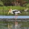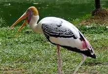 彩鹳:鹳科、鹮鹳属的鸟类。体长93-102厘米,体重2-3.5千克。橙黄色的嘴粗而长,但嘴尖稍微向下弯曲。脚为红色,也特别长,胫的下部裸出。橙色的头部赤裸无羽,繁殖期变为红色。体羽主要为黑色和白色,…全部>>