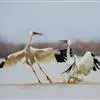 白头鹤,是鹤形目鹤科鹤属动物。白头鹤为大中型涉禽,体形较丹顶鹤小,体长90~97厘米,除头部和颈的上部为白色外,其余各部羽毛均为灰色;眼先至额部为黑色,头顶上的皮肤裸露无羽毛,呈鲜红色、虹膜深褐色,…全部>>