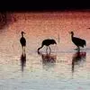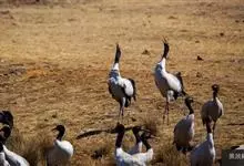 丹顶鹤:是鹤科、鹤属的一种大型涉禽,体长120-160厘米。颈、脚较长,通体大多白色,头顶鲜红色,喉和颈黑色,耳至头枕白色,脚黑色,站立时颈、尾部飞羽和脚黑色,头顶红色,…全部>>