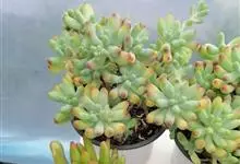 乙女心是景天科景天属的多肉植物,原产墨西哥。多年生亚灌木,茎叶肉质,株高5-30厘米。叶片簇生于茎顶,圆柱状,淡绿色或淡灰蓝色,叶先端具红色,叶长3~4厘米。花小,黄色。春秋为生长季,…全部>>